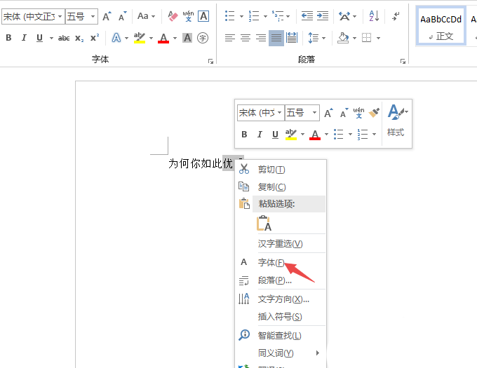 4、然后我们右击选择字体;