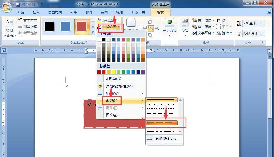 8、点击形状轮廓,找到虚线,选择一种虚线样式;