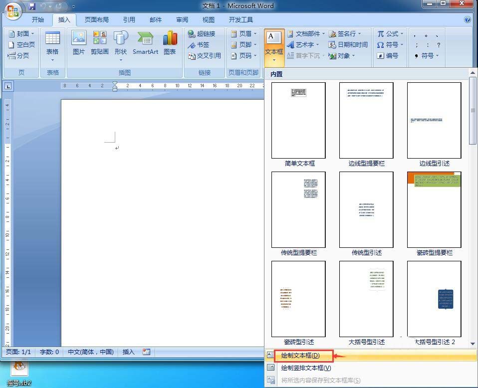 5、按住鼠标左键不放,在空白页面拖动鼠标,画出一个文本框;
