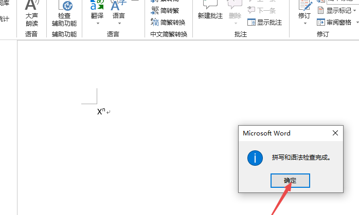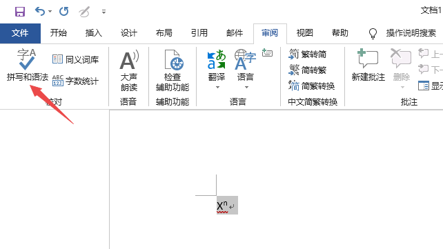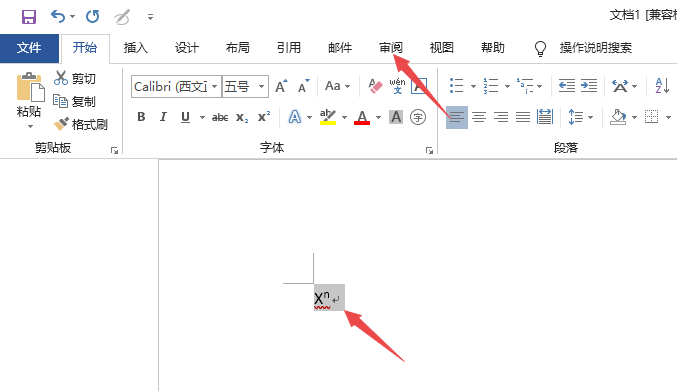 4、之后我们其实已经看出这样就显示出来X的n次方了,但有红色波浪线,我们选中X的n次方,然后点击审阅;