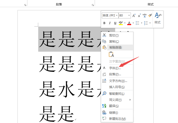 2、之后我们右击选择字体;