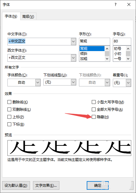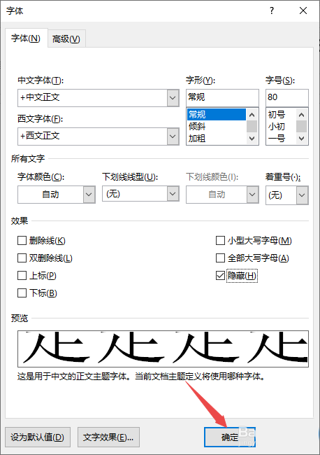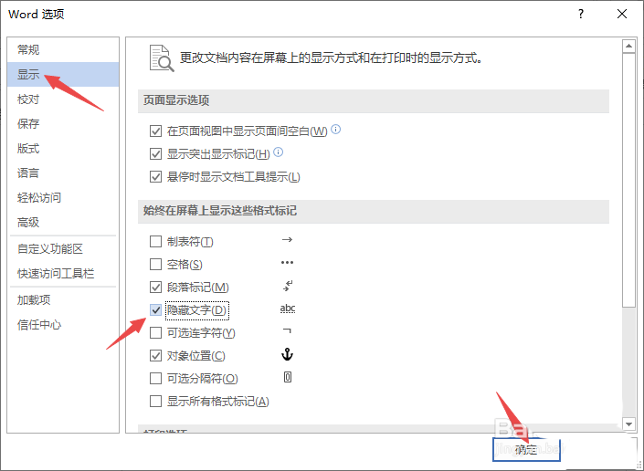 8、之后点击显示,然后将隐藏文字给点击勾选上,然后点击确定;
