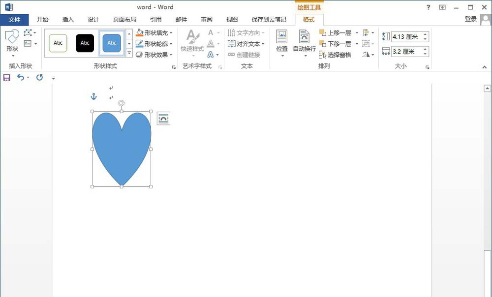 3、拖动鼠标,在文档中画出心形形状,如图所示。