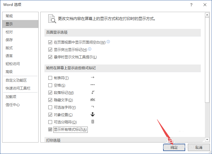 6、最后,我们点击确定就可以了。这样便可以显示所有格式标记了。