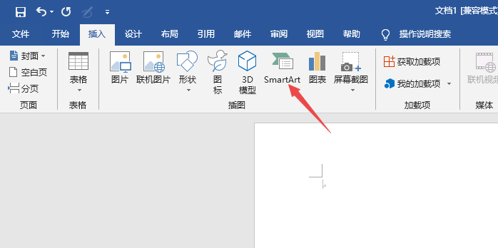 2、之后点击SmartArt;