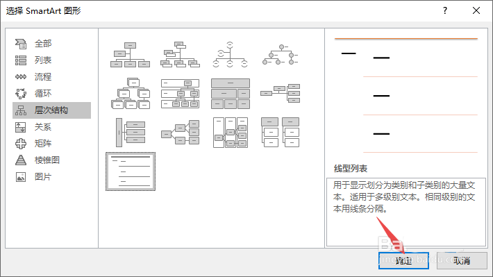 4、之后点击线性列表;