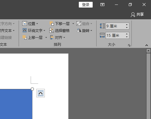 3、选中矩形,调整一下矩形的长宽。根据5:3的比例,将其设置为长15厘米,宽为9厘米。