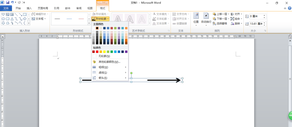 4、选中组合线条,单击"绘图工具"的"格式"选项卡,在"形状样式"组中单击"形状轮廓"按钮,在下拉列表中设置线条颜色、线条粗细等。