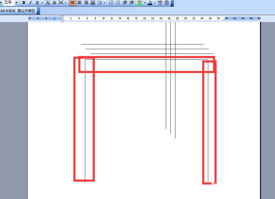 8、再用一线直线与两条竖线的下端对齐,双击这条横线,弹出对话框,把它缩小。