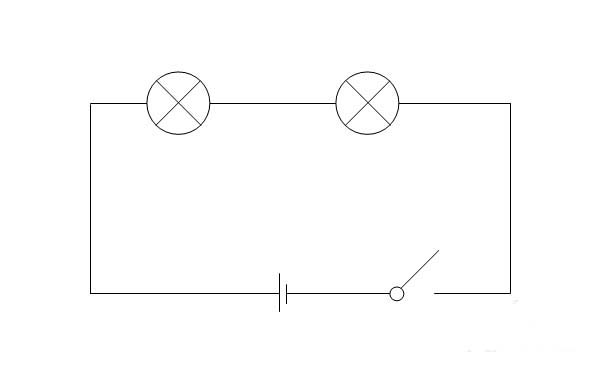 9、使用我们复制的横线与竖线按下图样式,把电池和两条电路画好。