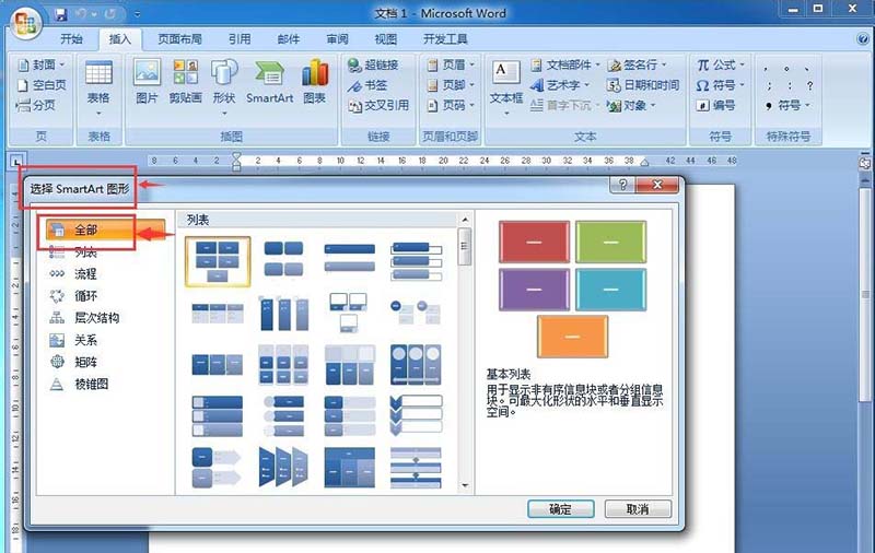 3、进入选择SmartArt图形页面,可以看到全部的图形;