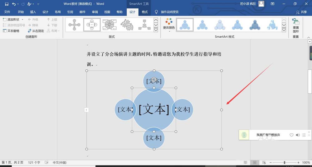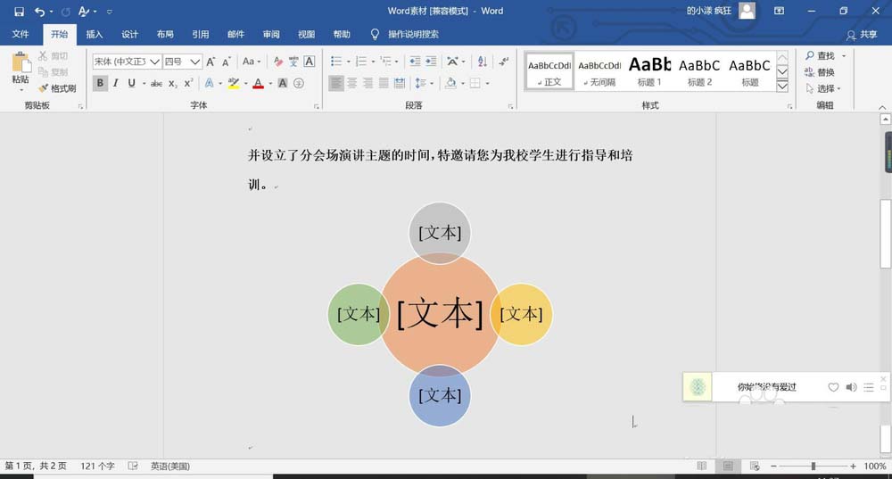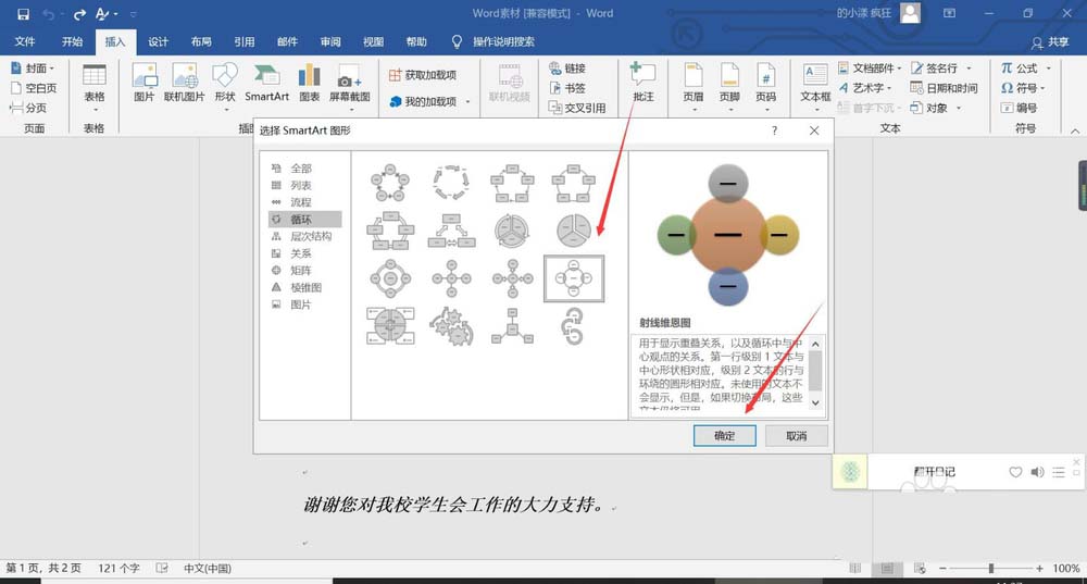 word2016怎么快速制作射线维恩图?