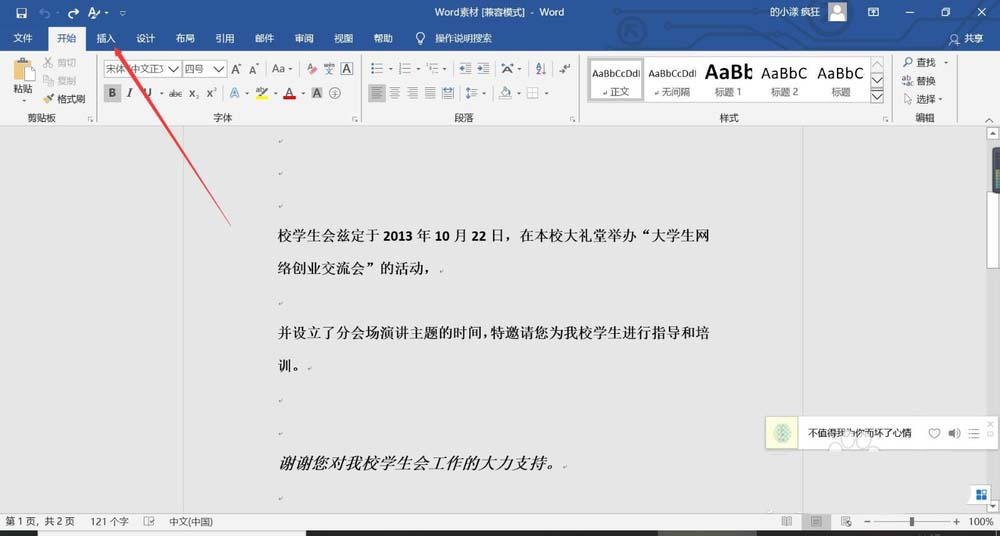 1、在你需要插入的文档里面找到插入按钮。