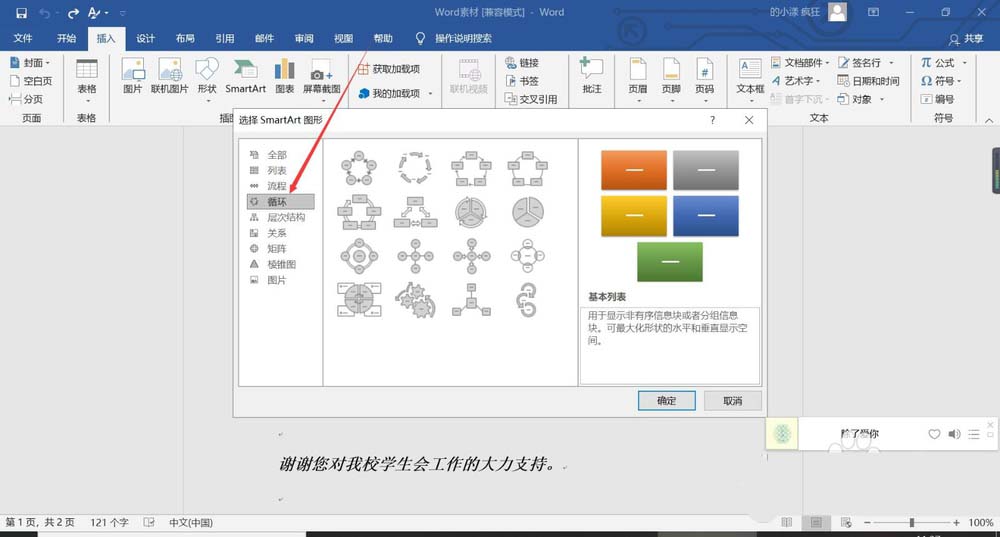 2、找到smartart在里面找到流程就可以了。