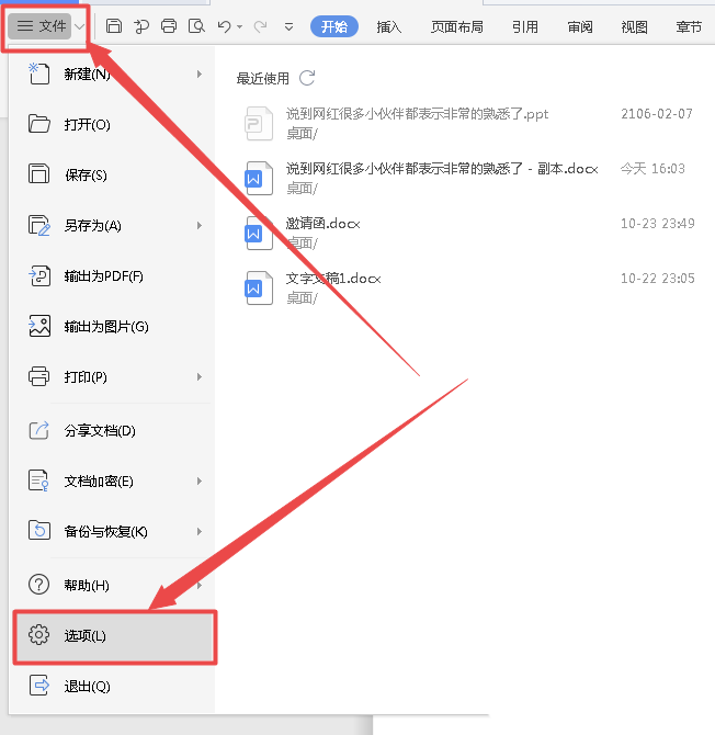 5、接着我们选中"文件"找到"选项",如图