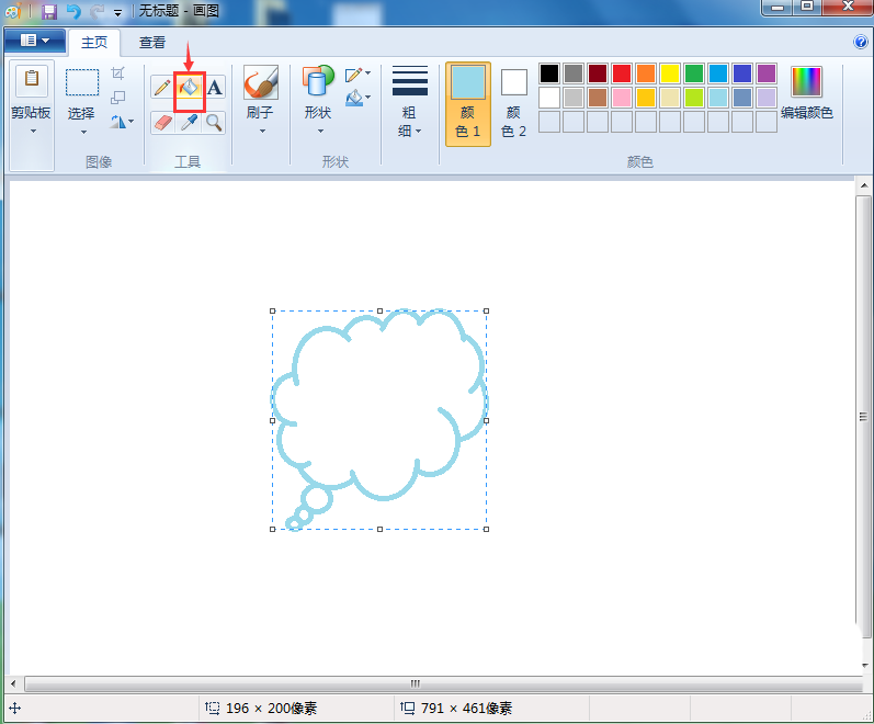 画图工具怎么绘制蓝色的云形标注?