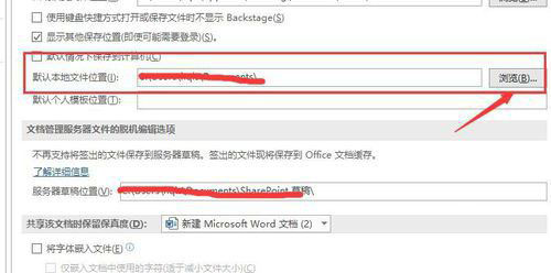 之后,在对话框右侧找到"默认本地文件位置",其中显示的即为当下所打开文件的默认位置,点击该栏右侧的"浏览"。