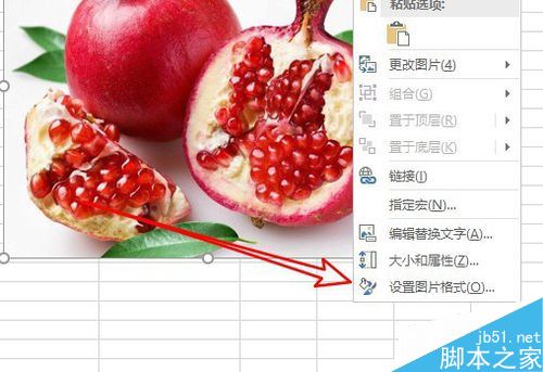 右键点击图片,在弹出菜单中选择设置图片格式的菜单。