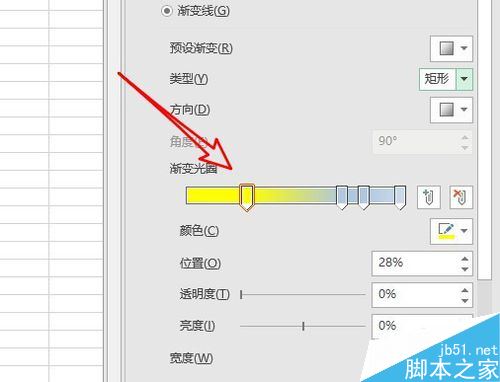 5、然后我们再设置渐变线的颜色与透明度等。