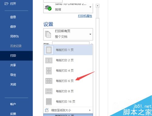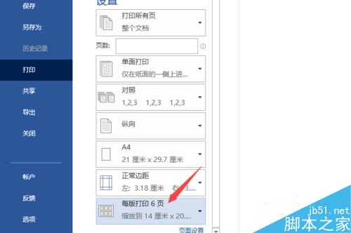 然后点击选择每版打印6页;