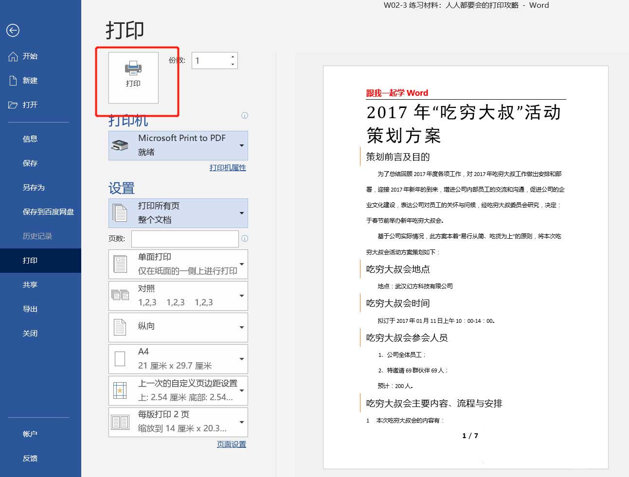 7、此时我们看到打印预览中一张Word页面仍然只显示一版的内容,我们点击【打印】,如图7