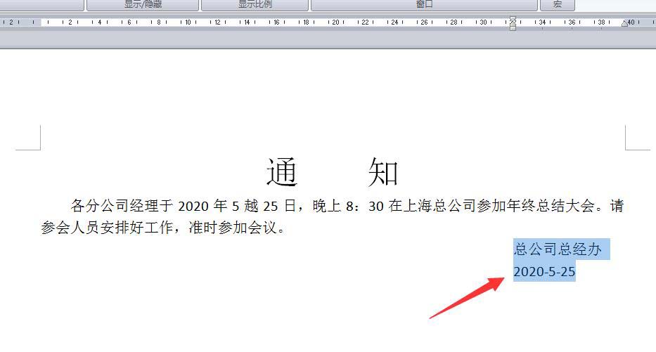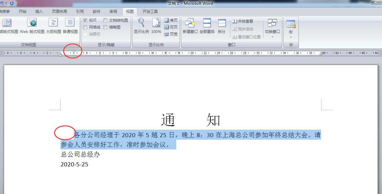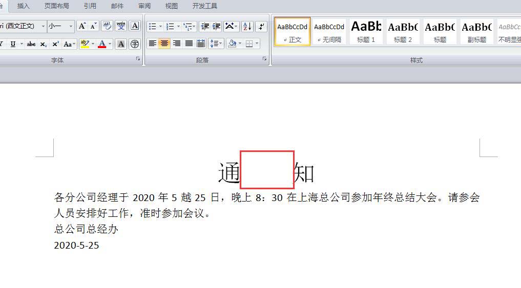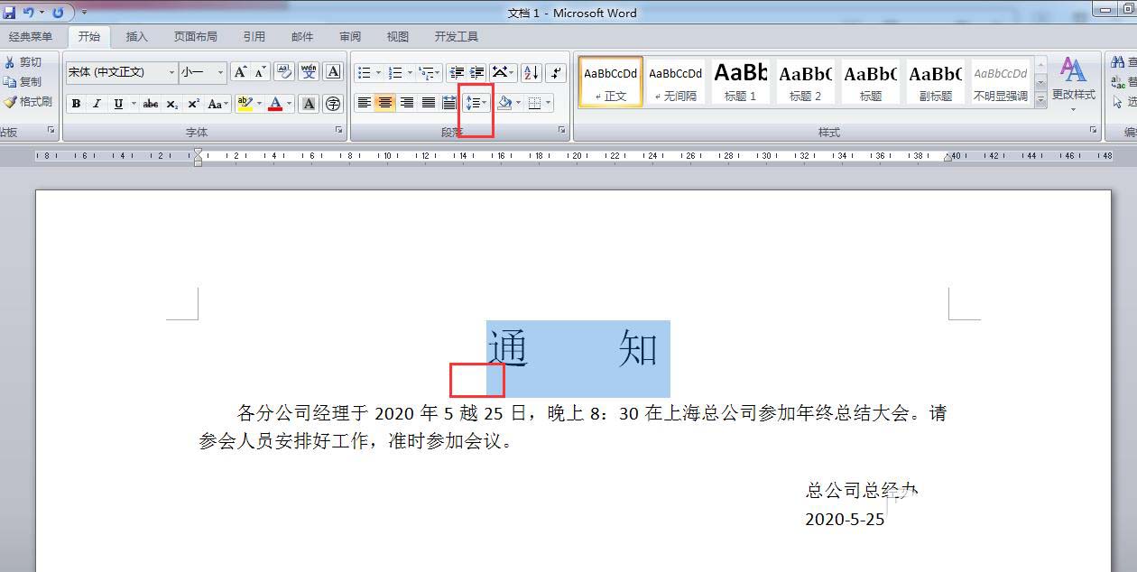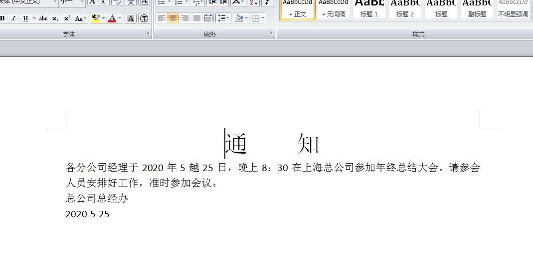 然后再把光标定位到通知中间,然后按回车键调一下间距,如下图所示。