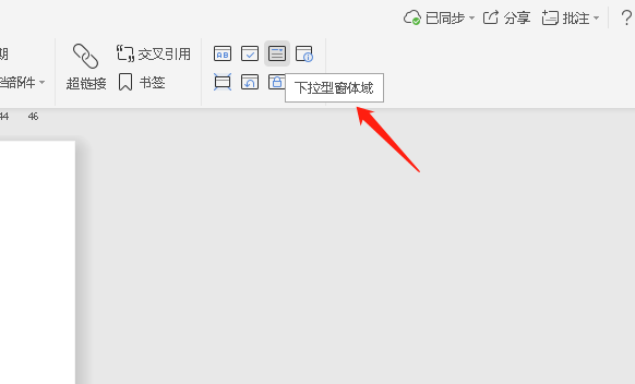 3、接着点击插入菜单下的下拉窗体域按钮,如图。