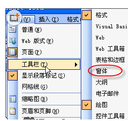 1、首先在"视图"菜单下的"工具栏"下打开"窗体"工具栏。