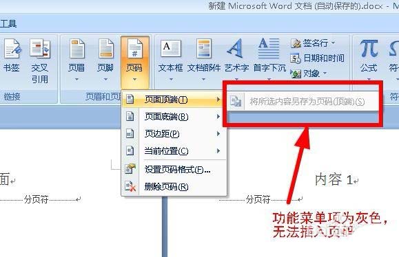 word2007插入页码是灰的怎么办? word页码是灰色不能用的解决办法