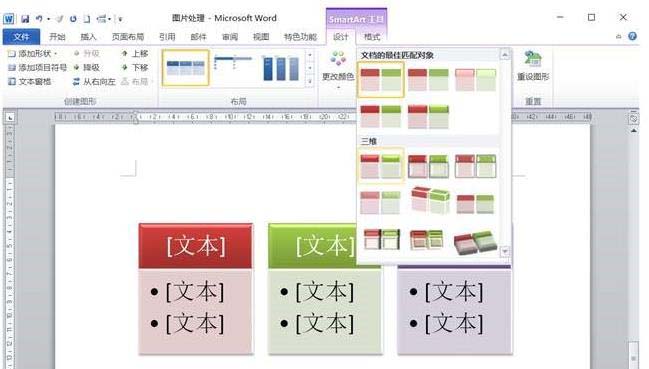 4、在SmartArt 工具栏中选择设计院选项卡——样式组,选择自己的样式 。