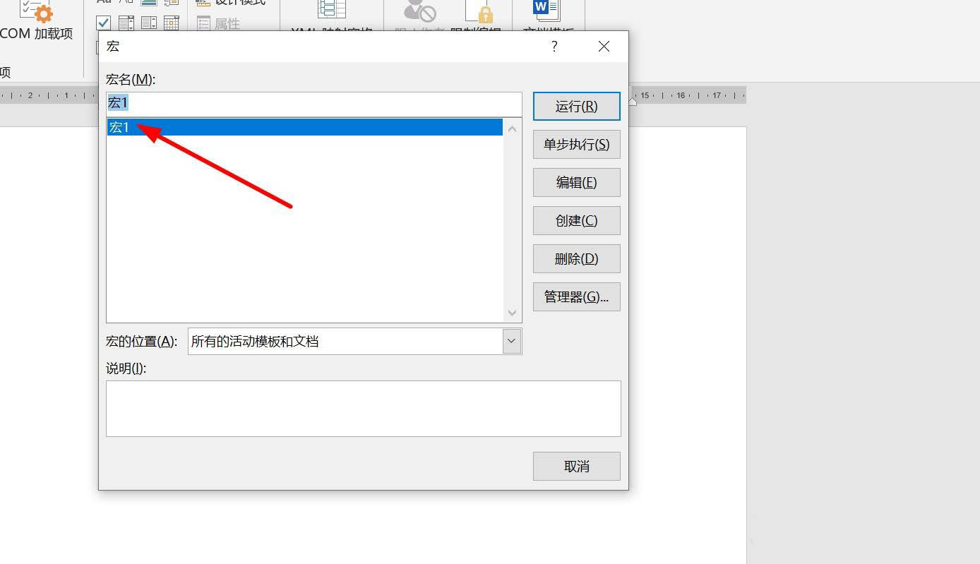5、鼠标双击宏的名字,这里双击"宏1"。
