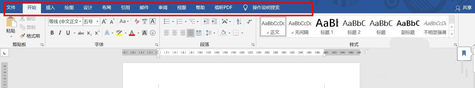 1、打开word文档,可以看到菜单栏中没有"开发者工具"菜单。