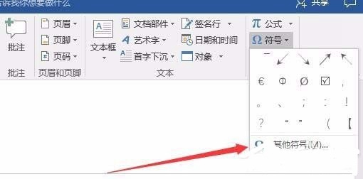 3、插着在工具栏上找到"符号"图标,点击下拉菜单后选择"其它符号"快捷链接。