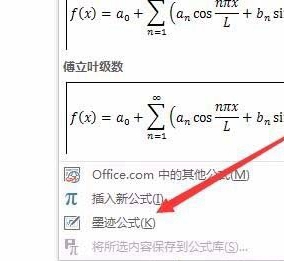 3、在弹出的下拉菜单中我们选择"墨迹公式"菜单项。
