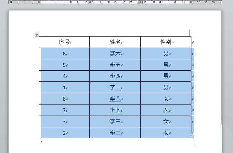 7、表格顺序被重新排序了。这时我们发现word文档里的表格也实现了excel里的功能。