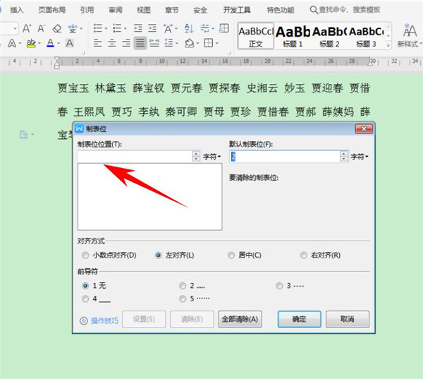 弹出【制表位】的对话框,可以看到制表位中可以自定义设置制表位位置: