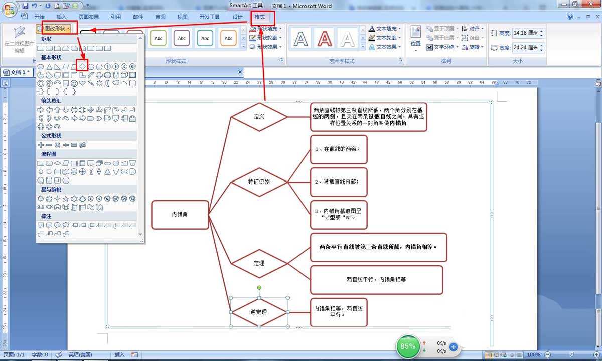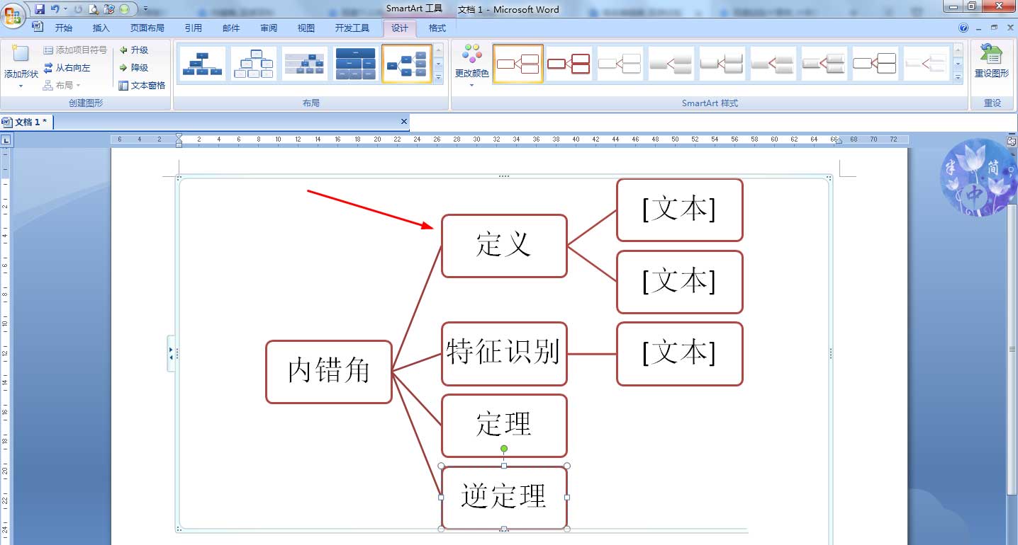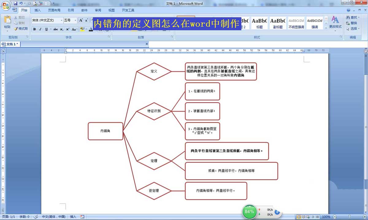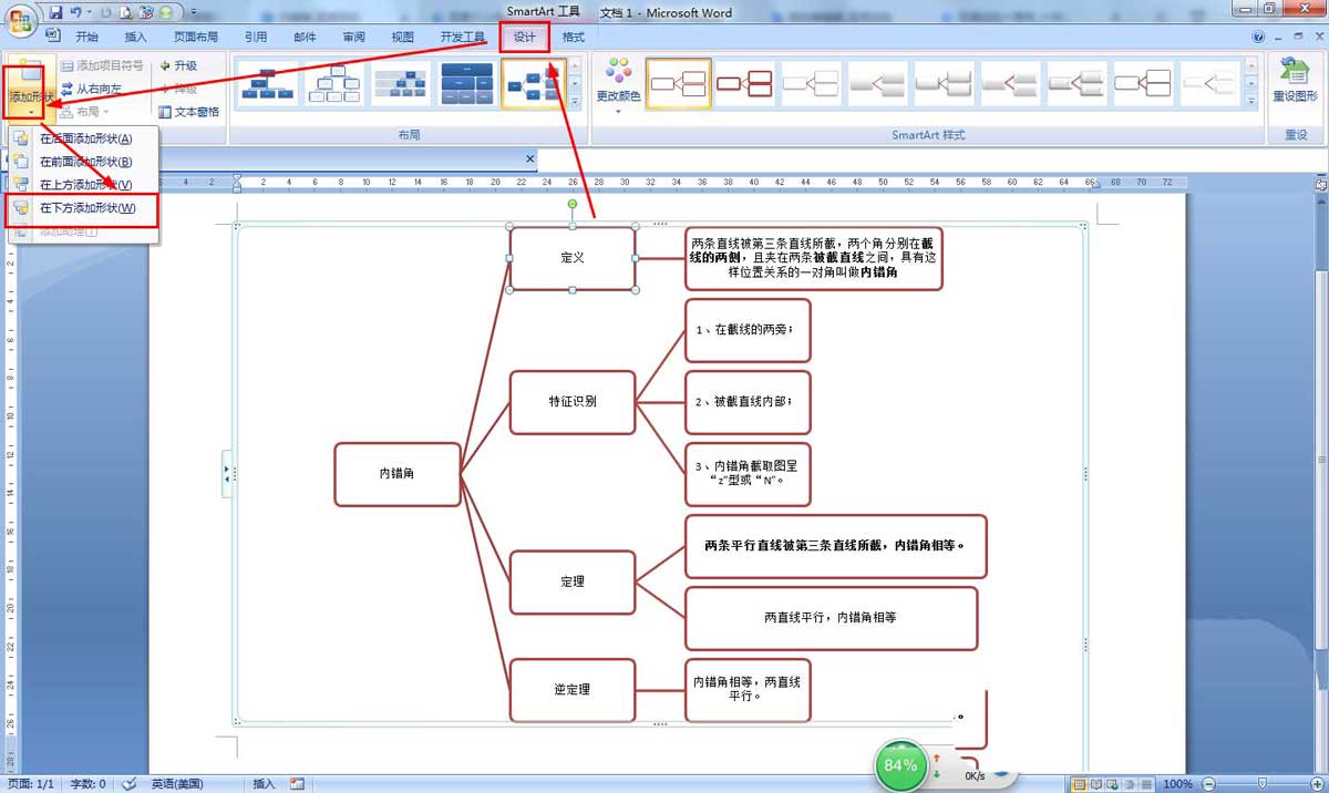 word怎么制作内错角的定义图? word内错角概念思维导图的画法