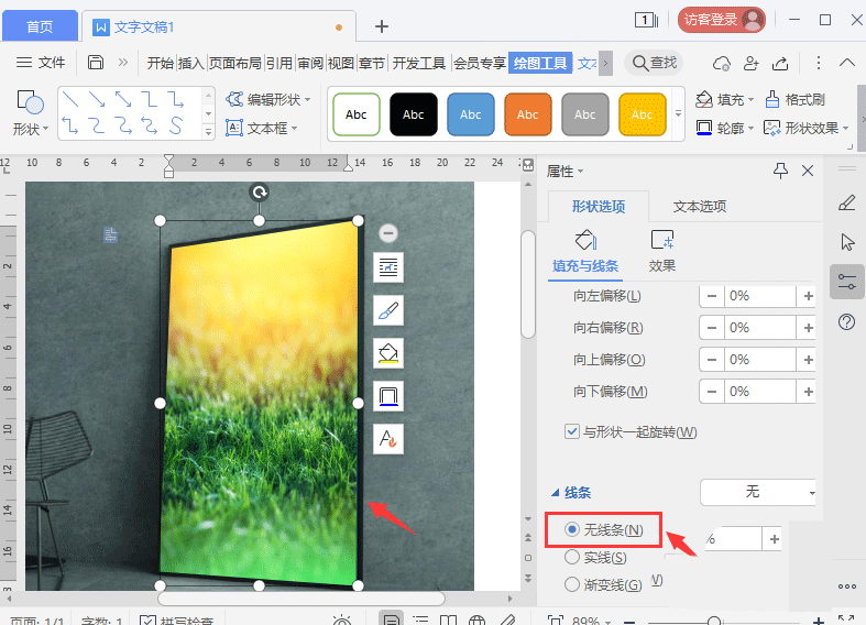 5、图片已经填充到形状之后,我们把线条设置为【无线条】,如图所示。