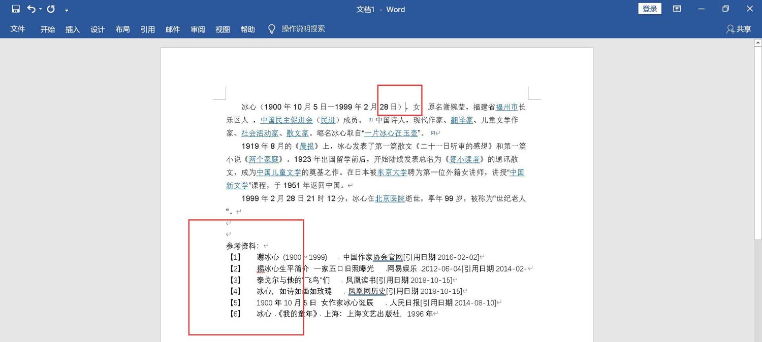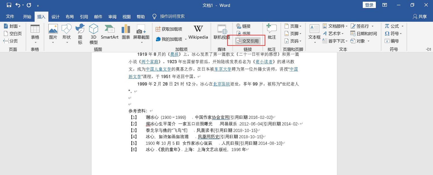 确认对话框后,参考资料添加了编号,光标移动到上方需要添加参考资料的位置处。