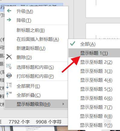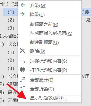 选中任意一级标题,点击右键,点击"显示标题级别"。
