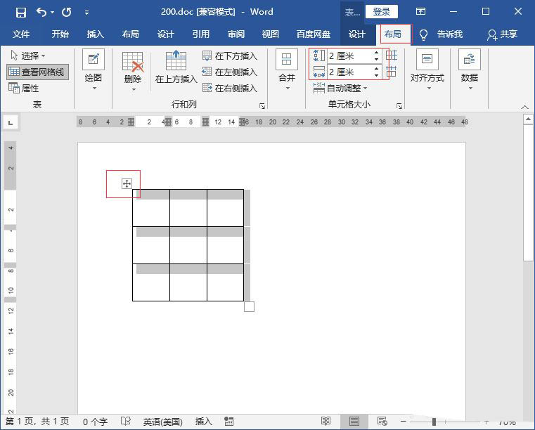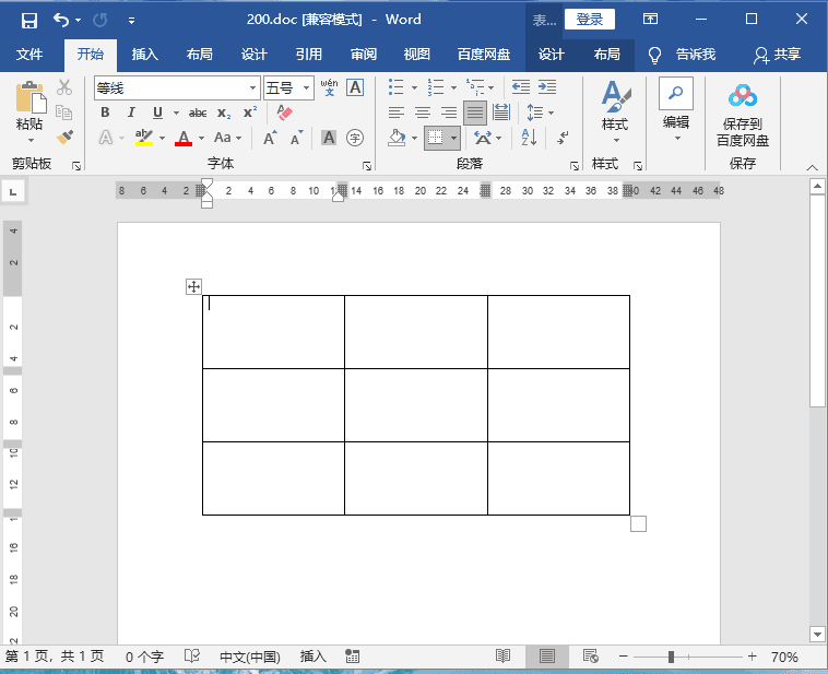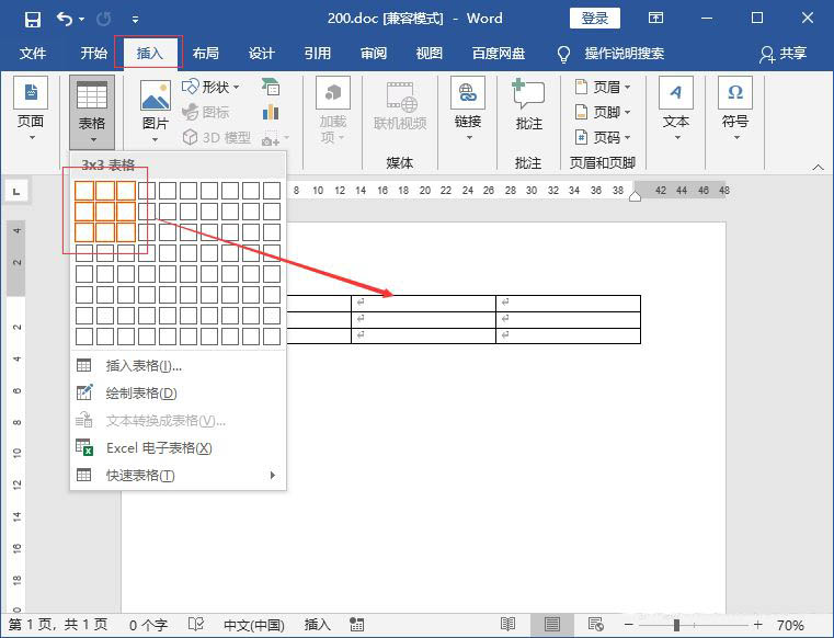 打开word文档,插入表格用来做演示。