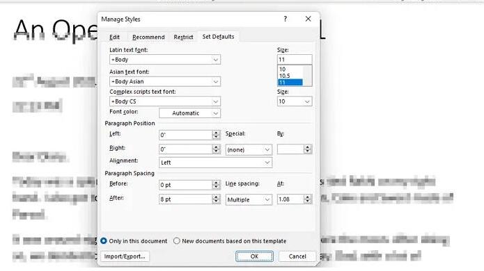 当您选择任何选项时,它会应用于整个文档。如果您只想应用到某个段落,您可以选择它并应用更改。