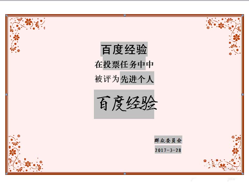 利于word模板功能可以制作出各种各样的证书,那么现在就利用word制作出一个奖状效果,效果如下图,同时分享制作的步骤和截图,希望对你有所帮助和启发。