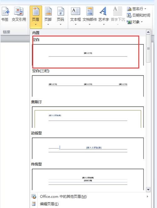 4、点击页眉,根据自己的喜好选择页眉的样式,我这里选择的第一个空白样式。