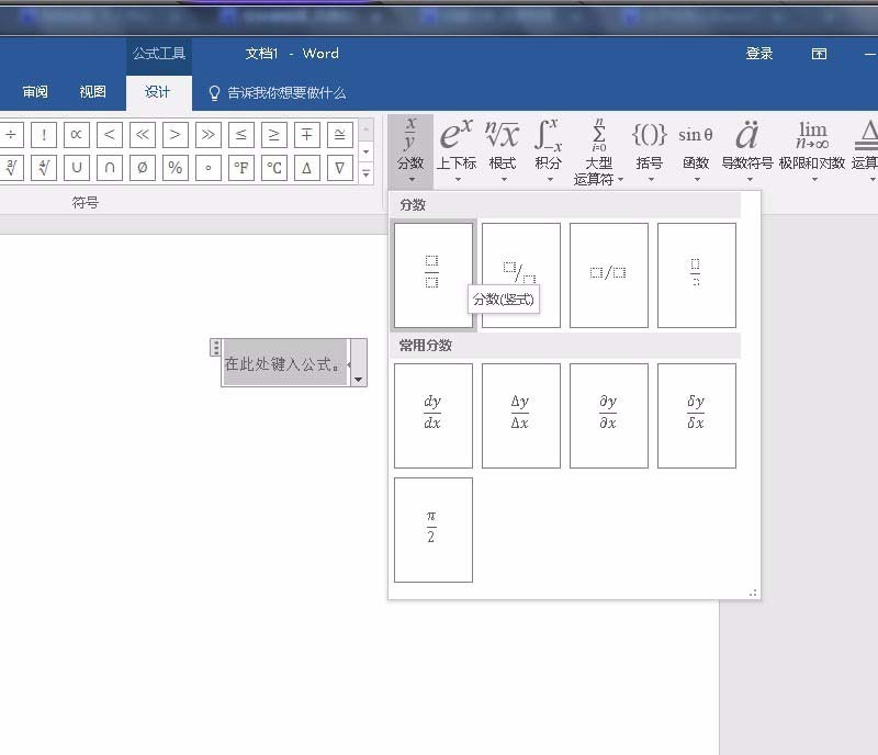 Word怎么插入数学公式中的分子式?