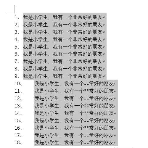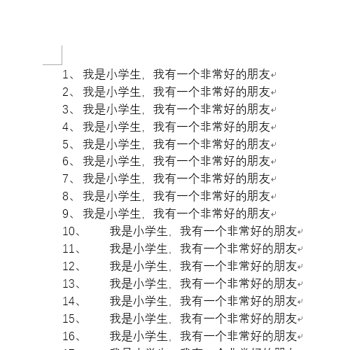 1、编辑内容。新建word,将要编辑的内容放到页面中,当你编辑序号的时候会发现序号到后面的时候会有空格出现,这就是我们要设置的内容。