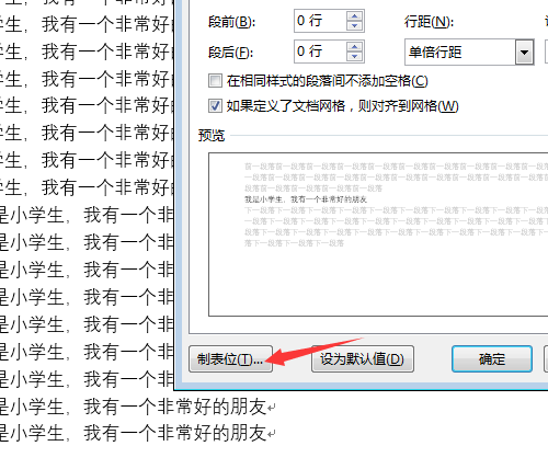 4、选择制表位。点击后会出现一个新的页面,这时候就可以在这个页面里选择右下角的制表位,通过设置这的参数来将空格去除掉。