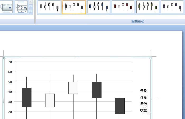 3、鼠标左键单击菜单【图表】>>【股价图】,鼠标左键拖动股价图,可调节股价图的大小,如下图所示。