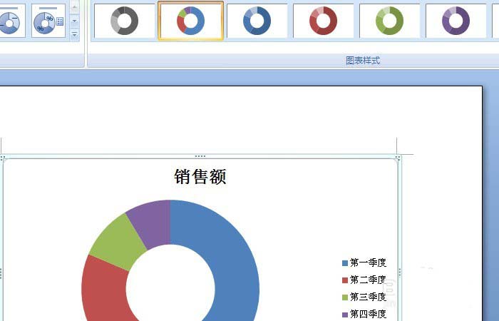 5、鼠标左键单击菜单【图表】>>【圆环图】,鼠标左键拖动圆环图,可调节圆环图的大小,如下图所示。