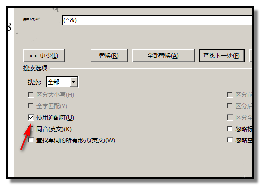 5、下方弹出扩展对话框;在"使用通配符"这里打上对勾
